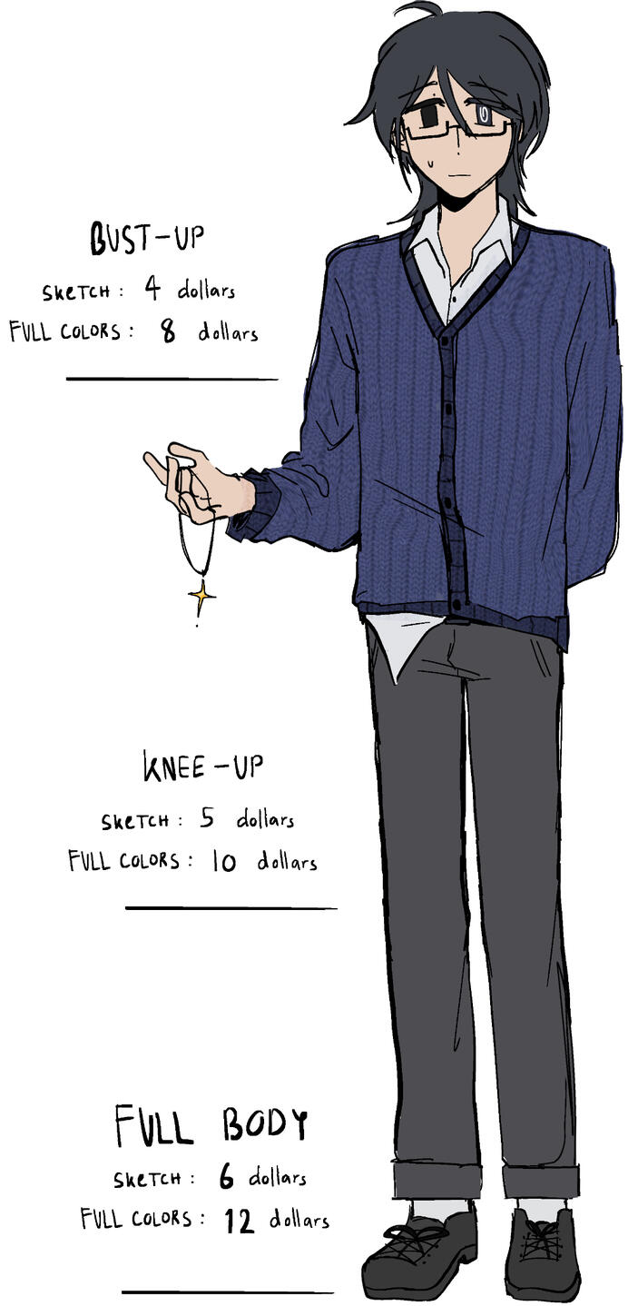current Statusnormal scale: open(0/1)Chibi Scale: closed(3/3)(I’ll raise the prices after this round so you should commission me now 😎)
